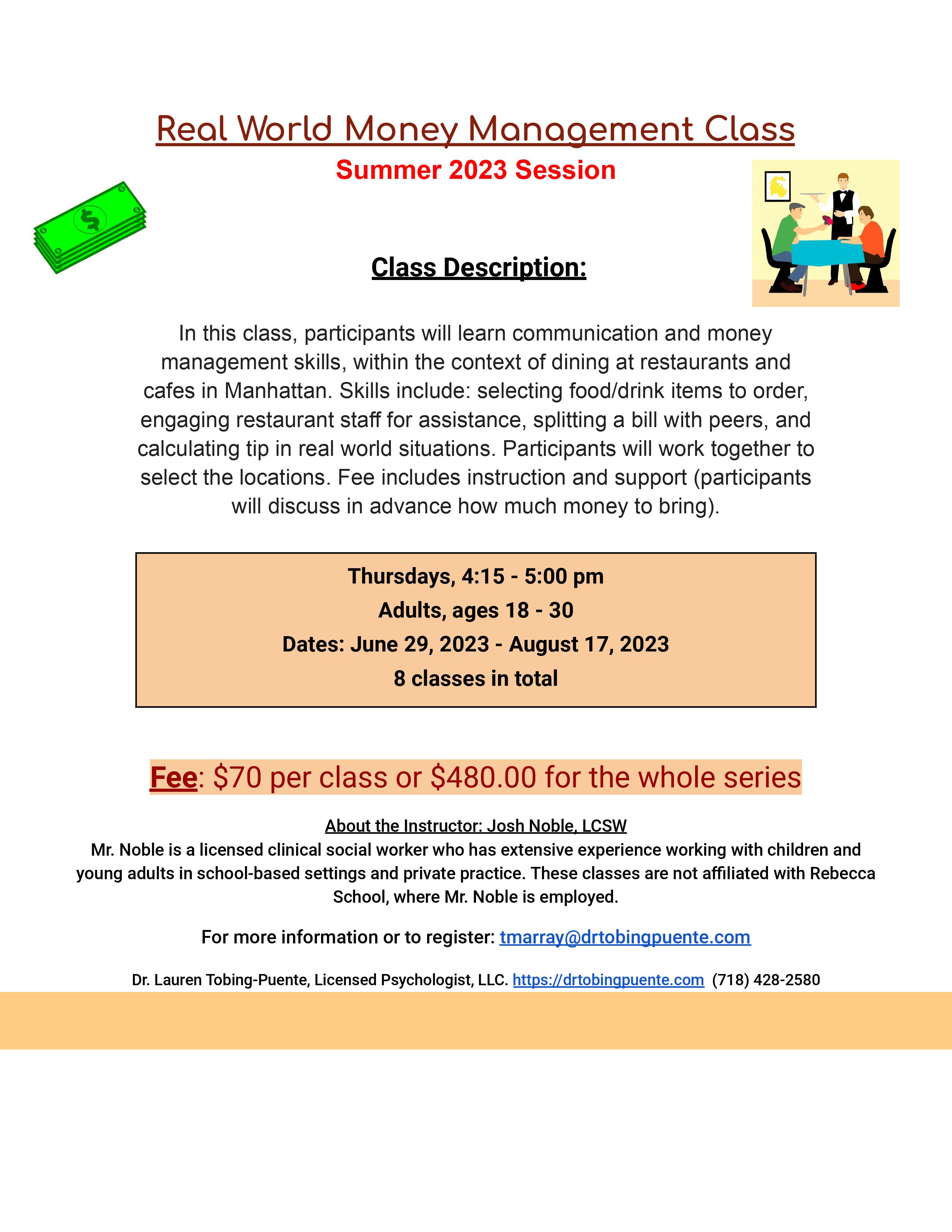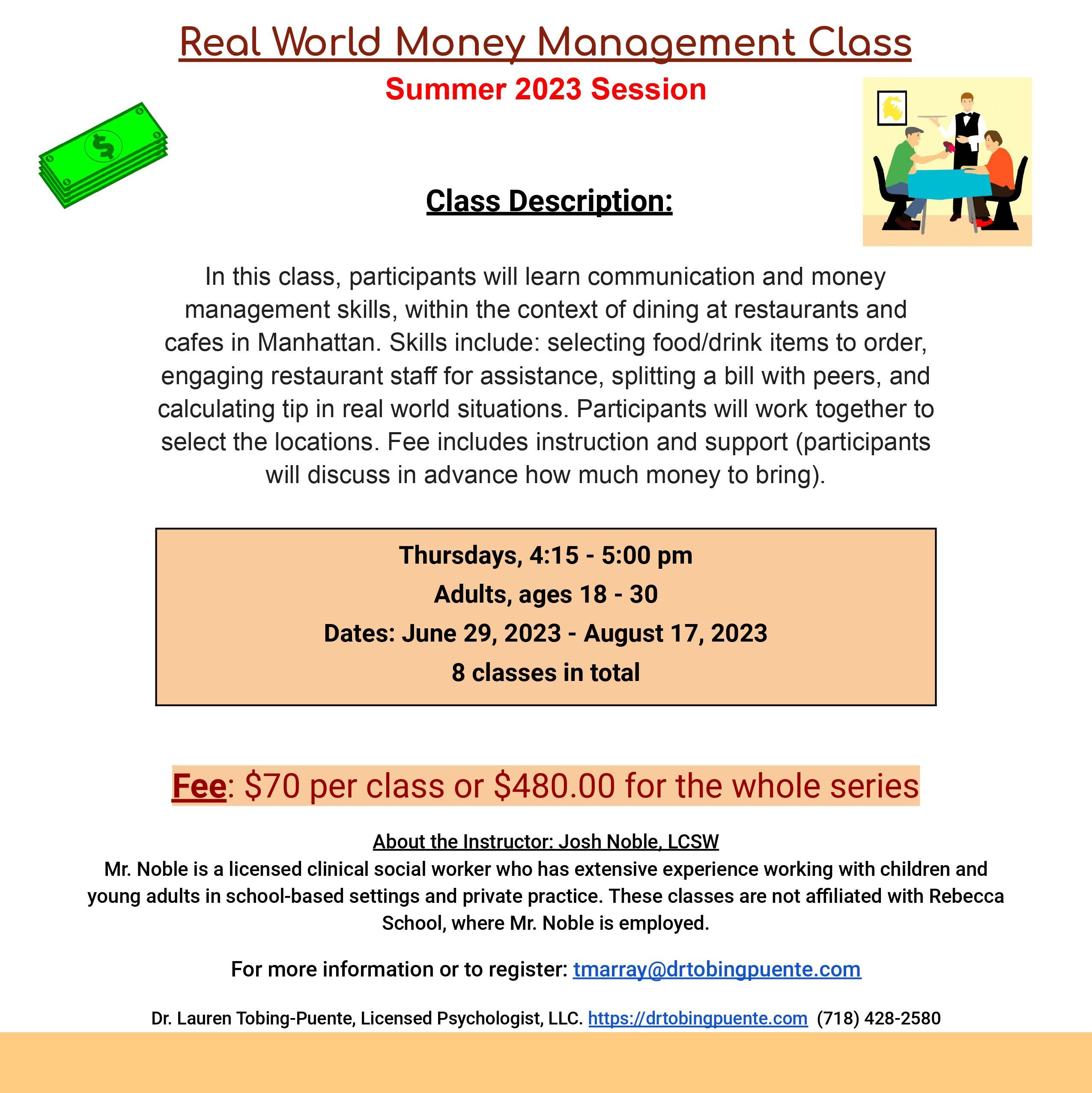 We proudly announce the start of our Summer 2023 semester of Real World Money Management Classes in-person for young adults ages 18-30!